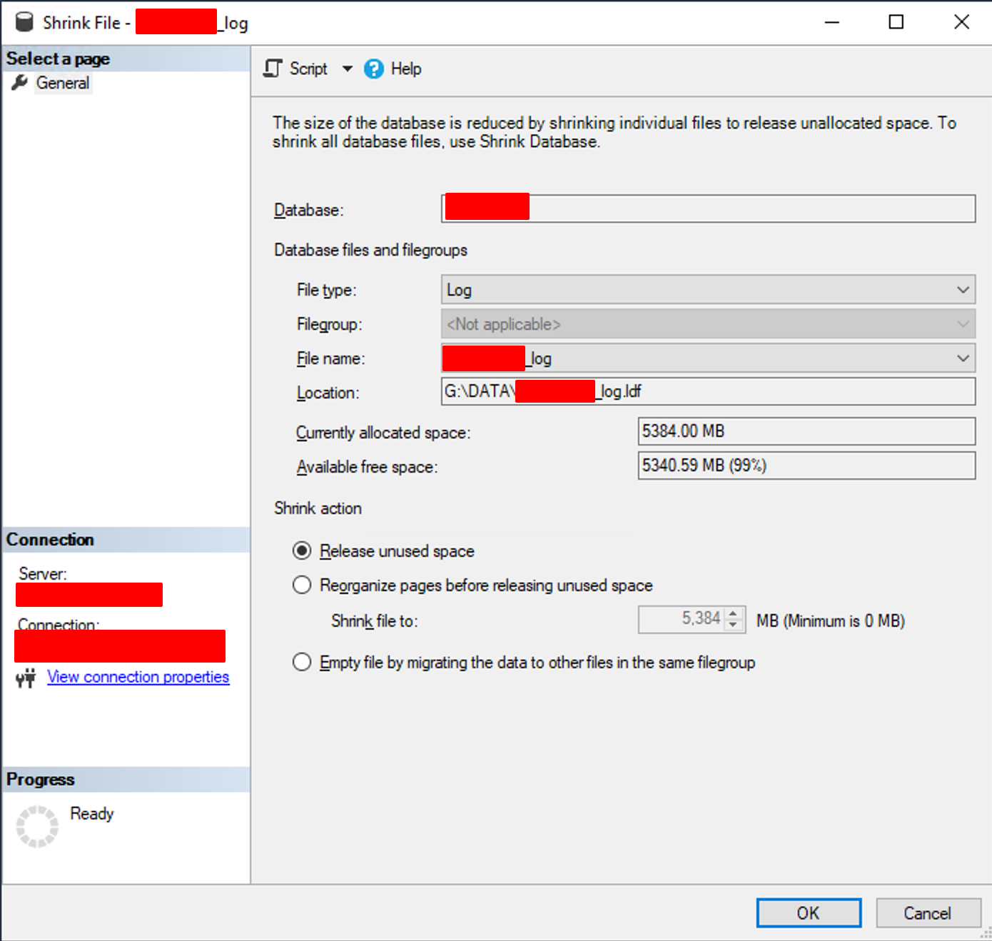 A solução? Realizei um shrink no arquivo de log, reduzindo significativamente o tamanho e a quantidade de VLFs que haviam sido criados durante o crescimento desordenado. Em seguida, gerei um novo backup e o restore fluiu sem travar nos 100%.