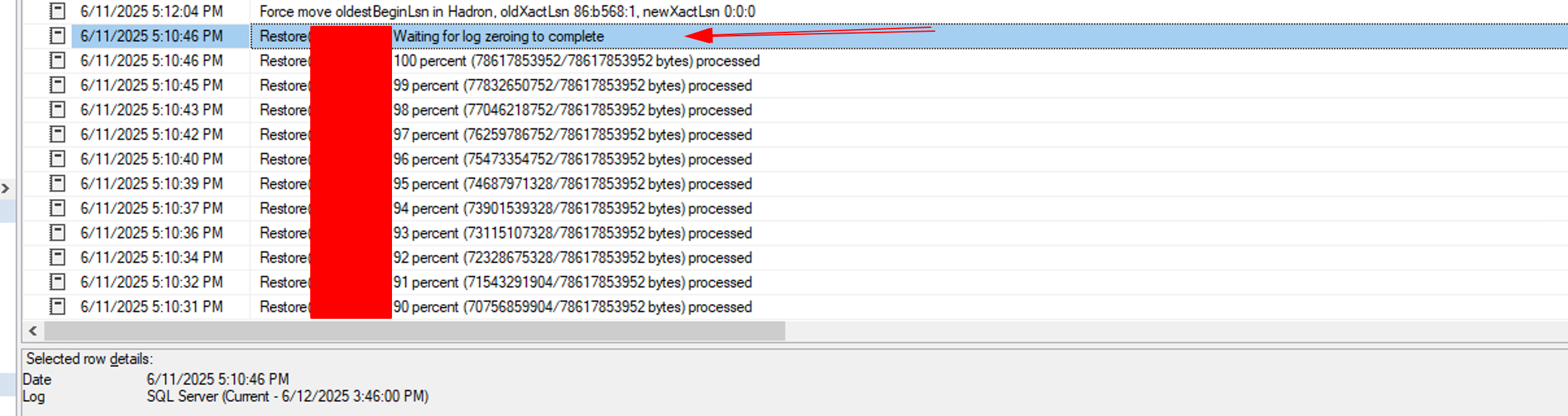 Pronto! Já tinha em mãos a evidência e a causa raiz do motivo pelo qual o restore estava levando uma eternidade para concluir. Agora, só faltava resolver o problema.